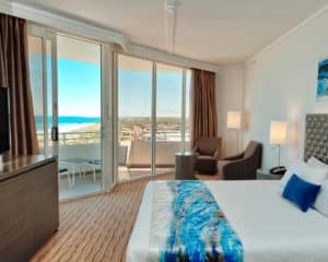 It isn’t right on the beach so the views aren’t quite as spectacular as the above option however you are only a couple minutes walk away. The rooms are super modern and neatly furnished. Pod machines, free Wi-Fi and a fitness centre are some of the features you’ll enjoy at a great price.